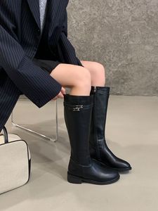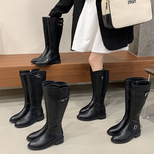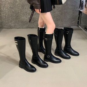 实穿战靴!英伦风百搭新款骑士靴高级感显瘦靴子长筒靴女粗跟圆头