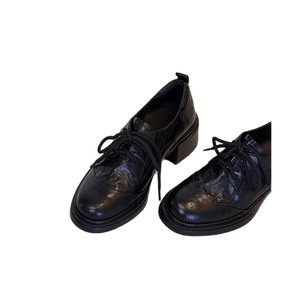 牛皮版~厚底小皮鞋女英伦风系带单鞋黑色高跟鞋粗跟学院风乐福鞋