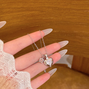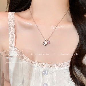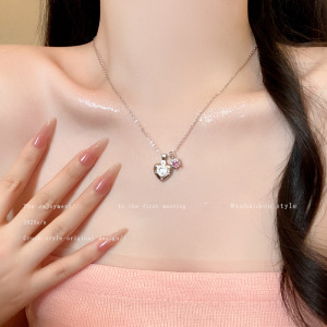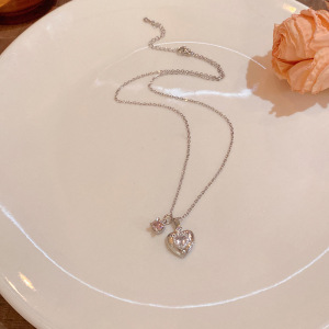 精致镶钻爱心吊坠钛钢项链女日韩风小众高级感锁骨链颈链配饰批发