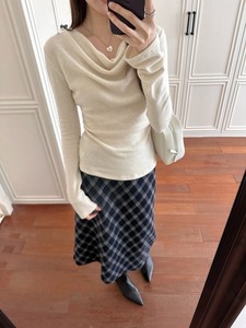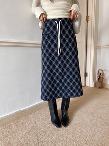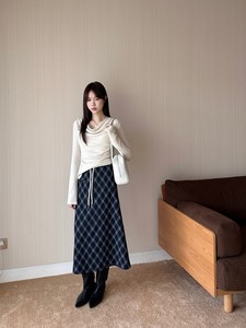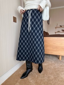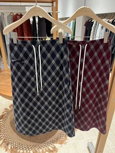 DIGM | 2025秋冬韩系复古格纹磨毛口袋抽绳高腰A字半身裙女A30037