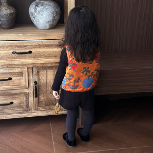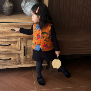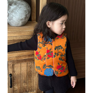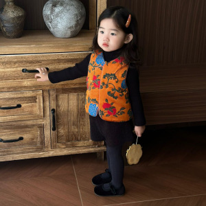 女童汉服套装秋季儿童超好看国风复古提花无袖马甲宝宝周岁宴礼服
