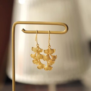 新中式金色银杏叶耳环女复古高级感耳坠轻奢古风独特耳饰旗袍