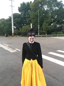 设计感套装小众假两件长袖针织衫女秋季高腰黄色长裙半身裙两件套