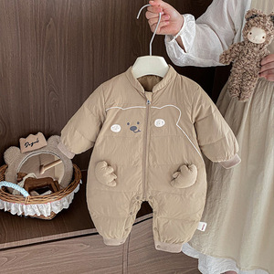 婴儿轻薄羽绒连体衣超萌卡通男宝冬装外出抱衣新国标90白鸭绒爬服