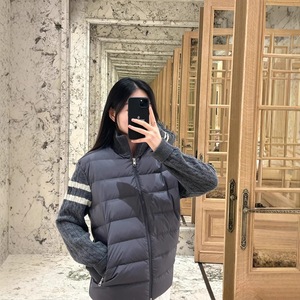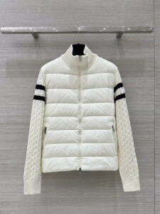 2025新款立领拉链条纹毛线拼接羽绒服时尚白鸭绒夹克外套男女同款