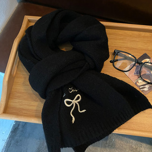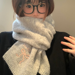 复古英文刺绣针织围巾女2025年秋冬季韩系氛围感可爱保暖护颈围脖