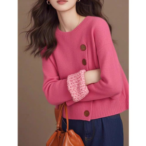 欧货重工设计感树莓色纽扣套头针织衫毛衣女2025新款冬慵懒高级感