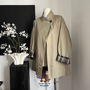 新款撞色风衣外套女春秋韩版宽松显瘦英伦风设计感小个子大衣