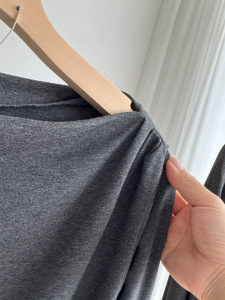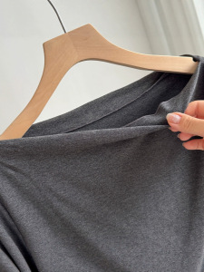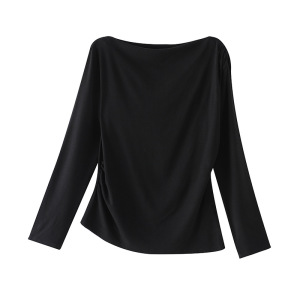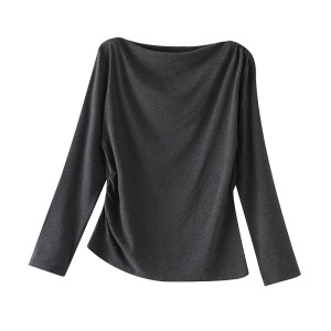 设计感小众一字领针织衫女秋冬长袖褶皱修身显瘦辣妹打底衫上衣