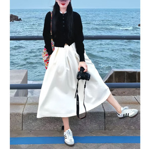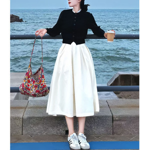 2025秋冬新款独特超好看韩系减龄撞色假两件针织衫半身裙两件套装