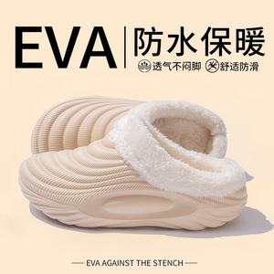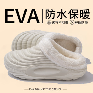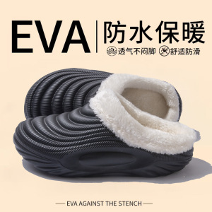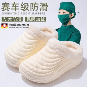 可拆卸防水毛套女冬季2025新款室内家居厚底保暖加绒外穿棉拖鞋男