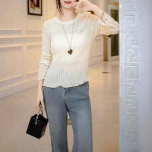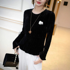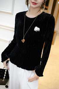 2025新款真丝丝绒重工手工钉珠小贵宾犬圆领百搭上衣法式时尚小衫