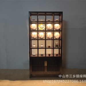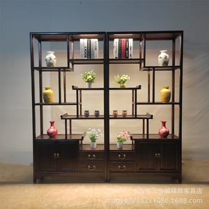 榆木新中式茶叶展示架实木多宝阁简约现代客厅隔断书柜茶酒博古架