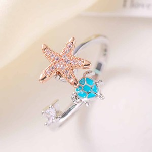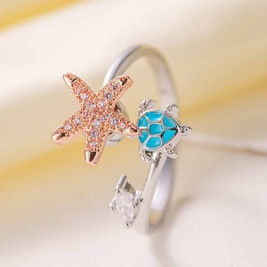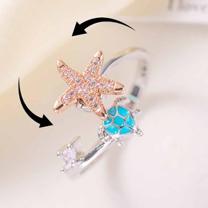 跨境热卖海龟星星旋转戒指时尚解压缓解焦虑开口气质可爱动物指环