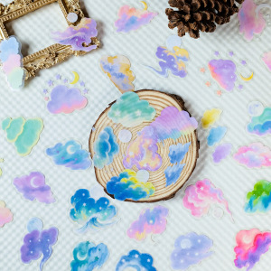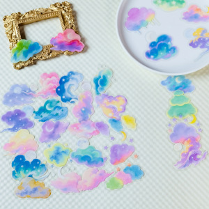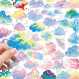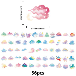 56张跨境新款彩色云朵透明PET贴纸温柔治愈系行李箱手账装饰贴画