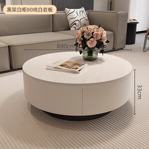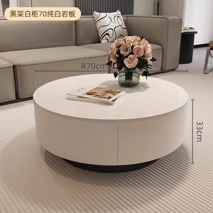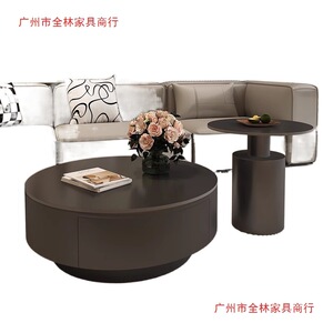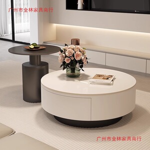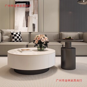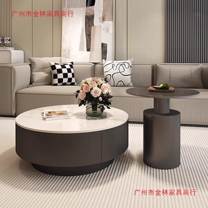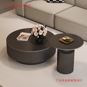 设计师新款轻奢圆形岩板茶几小户型客厅家用极简茶桌高级感组合