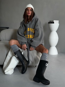 美式复古连帽外套潮牌街头流行字母印花撞色运动加厚澳绒卫衣女冬