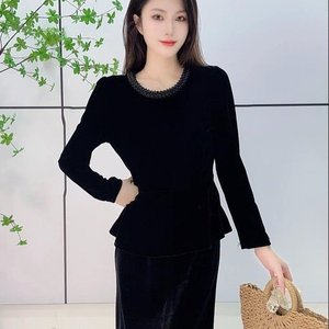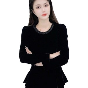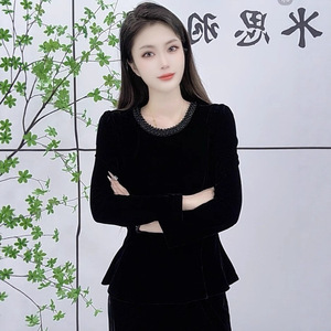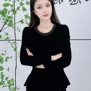 一件代发直播爆款2025秋季新款时尚圆领气质女装丝绒长袖打底衫