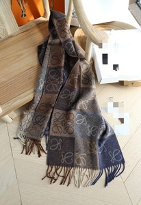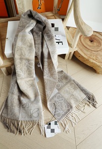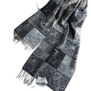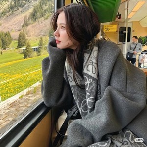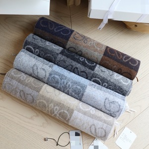 秋冬季棋盘格字母涂鸦双面围脖黑灰披肩羊毛羊绒流苏围巾女