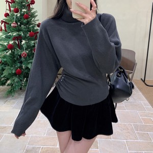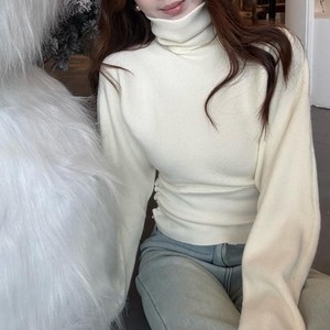 韩系高领浅蓝色针织衫女秋冬慵懒风收腰显瘦蝙蝠袖上衣女