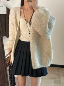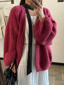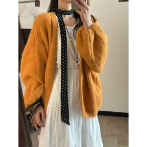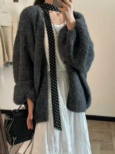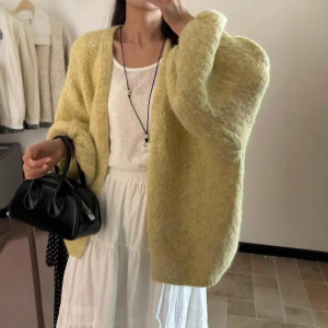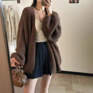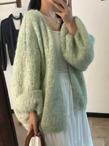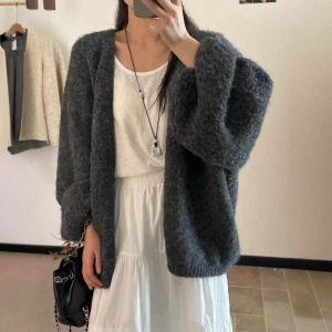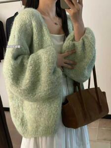 韩版慵懒风灯笼袖针织开衫女秋冬新款宽松软糯高级感加厚毛衣外套