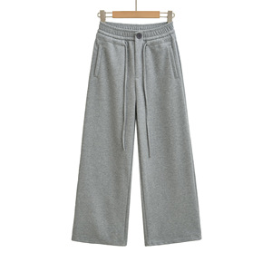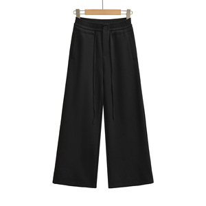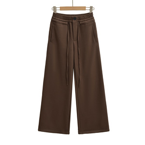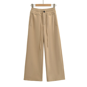K46-25秋季新款 欧美风抽绳松紧高腰单扣宽松阔腿直筒长裤休闲裤
