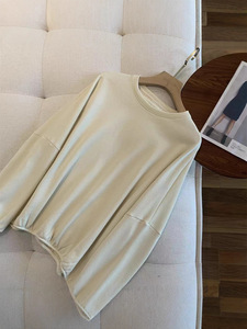美式街头风~全棉毛圈鱼鳞针织全年花纱圆领阔版宽松长袖卫衣女