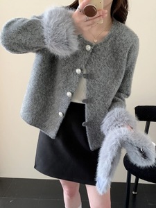 复古可拆毛领小香风针织开衫女2025秋冬新款设计感百搭毛衣外套潮