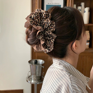 甜美咖色豹纹拼接大肠发圈高颜值少女心发绳低马扎头发头绳头饰