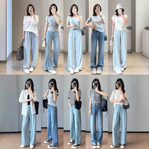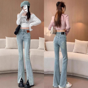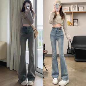 爆款美式复古阔腿牛仔裤女2025秋冬新款高腰宽松直筒拖地长裤批发
