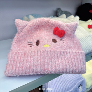批发韩国2025年秋冬新款甜美可爱卡通针织帽女韩版ins护耳毛线帽
