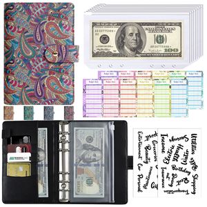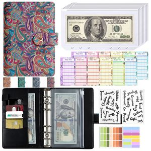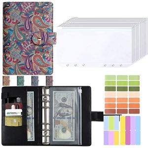 【异域腰果花】手账本外壳A6混色+8个拉链袋+(新)A6现金预算卡(12张)+英文贴纸2张