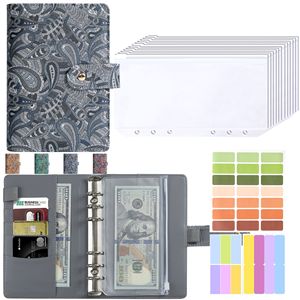 【异域腰果花】手账本外壳A6灰色+8个拉链袋+(新)A6现金预算卡(12张)+英文贴纸2张