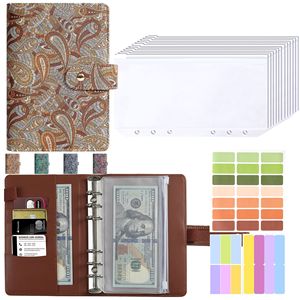 【异域腰果花】手账本外壳A6棕色+8个拉链袋+(新)A6现金预算卡(12张)+英文贴纸2张+标签贴