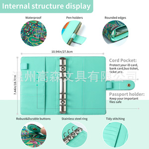 【异域腰果花】手账本外壳A6绿色-6孔+A6票据袋*8+【新】A6现金预算卡*12*分隔页*5