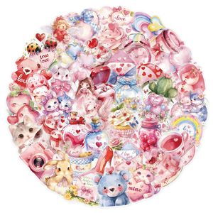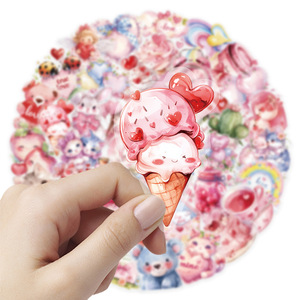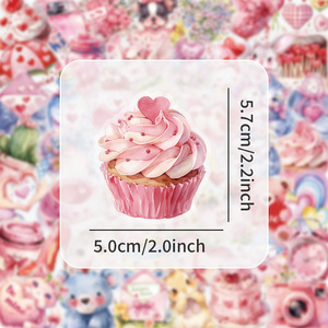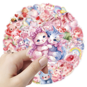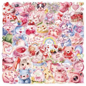 50张PET透明情人节贴纸S水彩LOVE爱心创意笔记本女孩手帐贴纸儿童