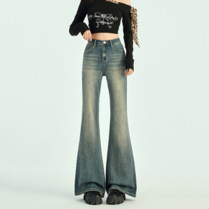 美式复古怀旧弹力微喇牛仔裤女2025秋季新款修身显瘦小个子喇叭裤