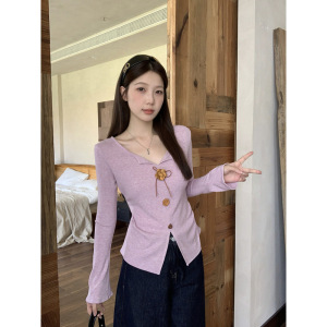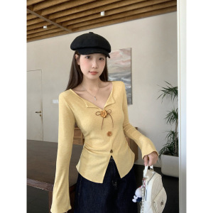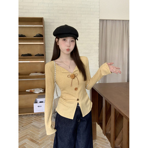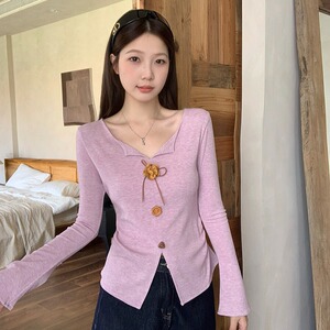 2025秋装新款大码胖MM时尚设计感立体花朵正肩修身长袖T恤上衣