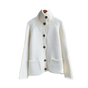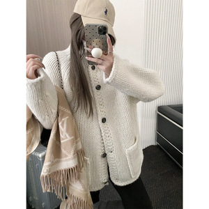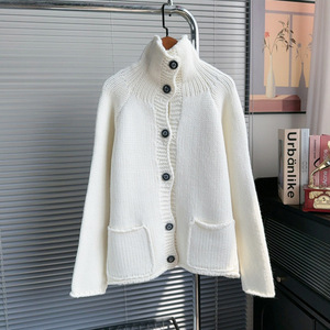 韩国设计款高领针织开衫女秋冬新款高级感重工粗针慵懒风毛衣外套