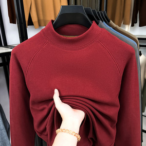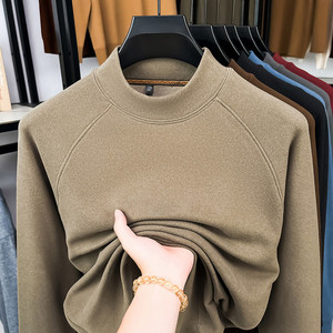 双面驼绒卫衣跨境半高领打底衫男士长袖纯色T恤中青时尚上衣批发