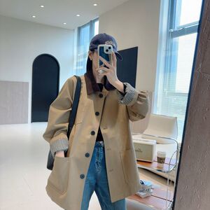 2025韩系新款风衣小个子中长款休闲感撞色宽松卡其色外套上衣
