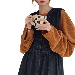 /牛仔V领背心连衣裙秋冬款大码胖mm宽松遮肉显瘦中长款套装裙