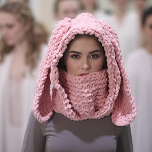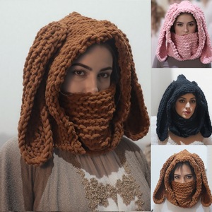 跨境热销女毛线帽子可爱兔耳朵头套围脖一体加厚保暖针织帽甜酷风