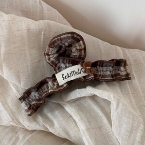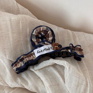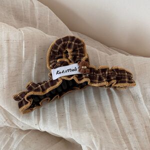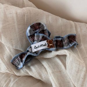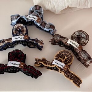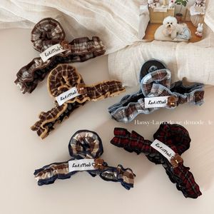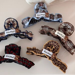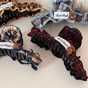 植绒小熊格纹贴布褶皱发夹质感高级盘发鲨鱼夹甜美发饰抓夹新款