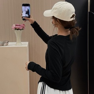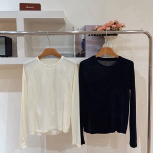 091803秋冬新款速干打底衫女洋气少女感圆领套头简约纯色长袖T恤