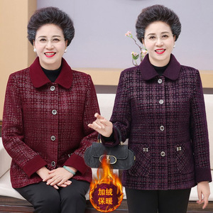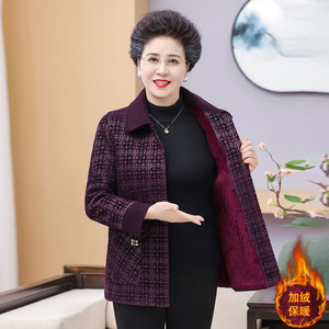 妈妈冬装外套水貂绒新款中老年人女秋冬季加绒加厚短款毛呢上衣服