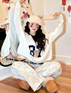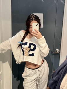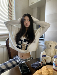 Hollister小海鸥短款小熊V领长袖针织毛衣辣妹美式复古休闲上衣