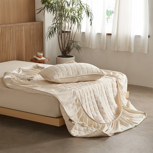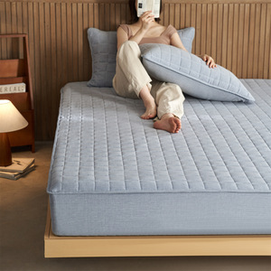 棉麻加厚席梦思防滑床笠三件套轻奢纯色简约双层纱A类母婴级简约