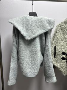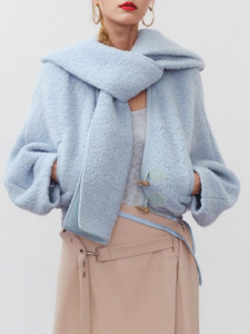 制作中原厂面料2025秋冬新款宽松蓝色羊毛围巾领廓形真牛角扣外套
