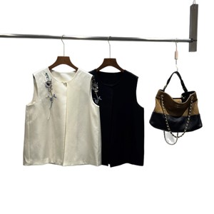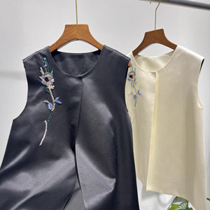 南油批发25秋冬款真丝丝毛法绣手工钉珠小玉兰花国风马甲洋气背心
